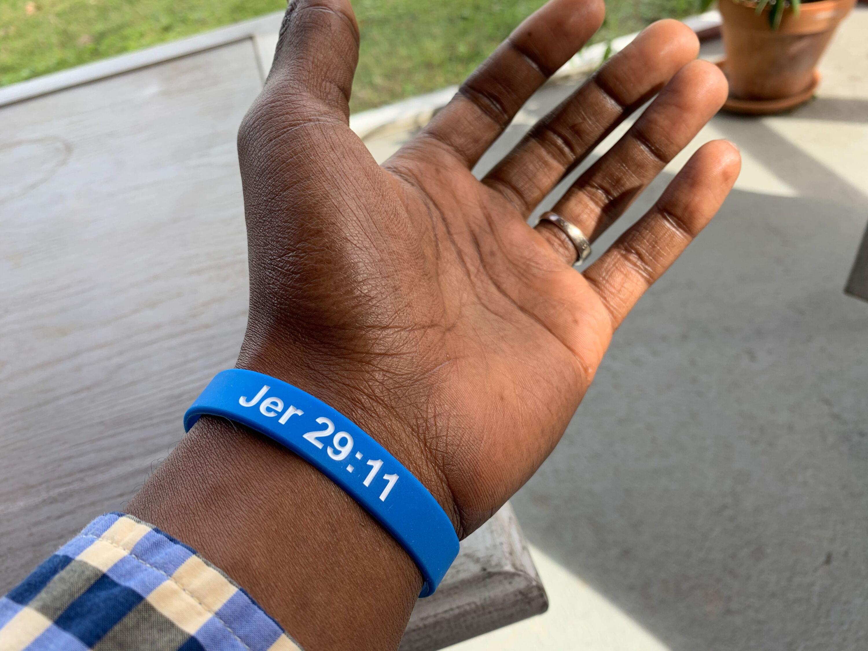 This wristband is a reminder of God's promise that for our lives, He has a plan for good and not disaster...